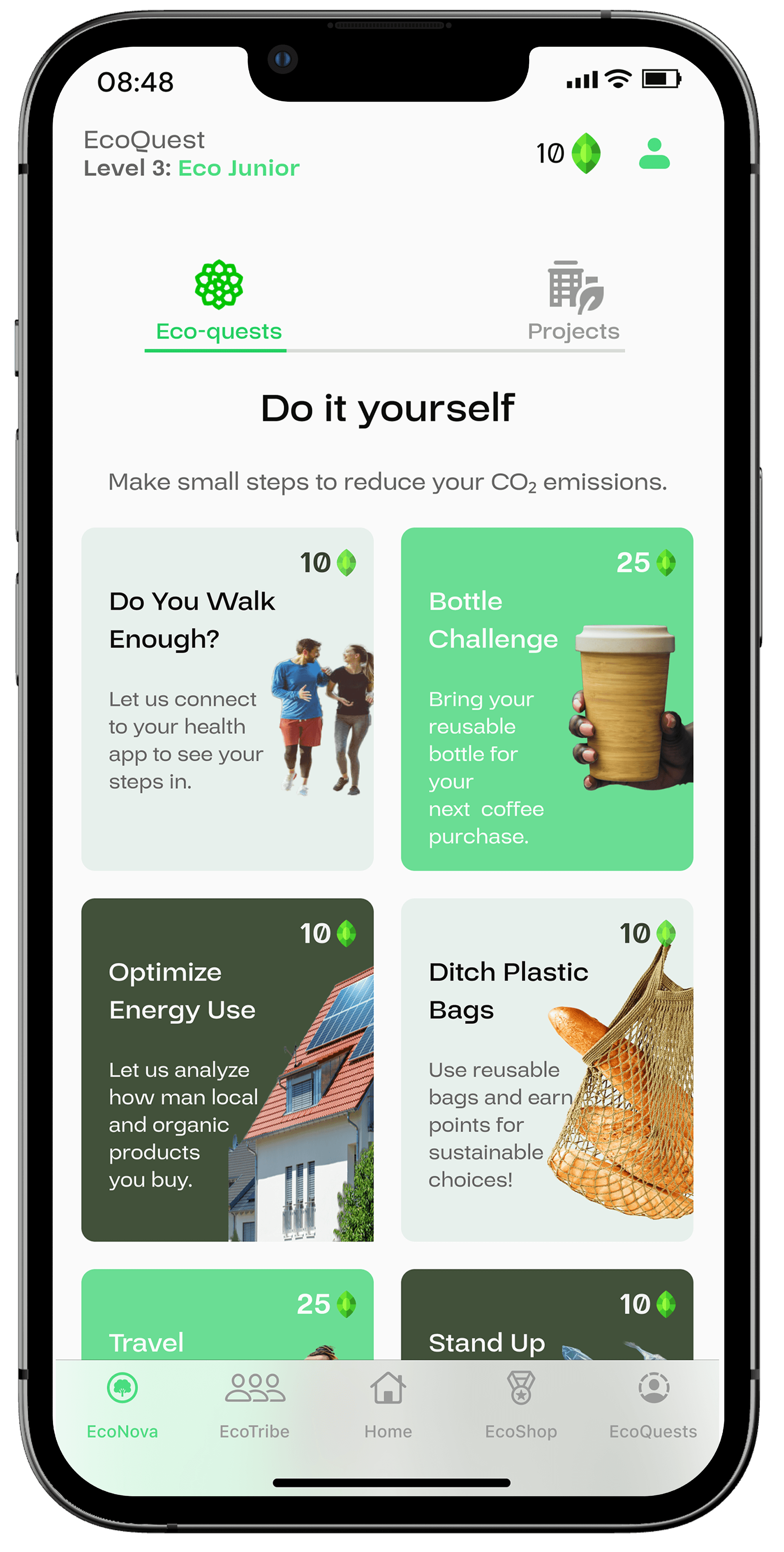 Case study project on designing a gamified mobile app that rewards eco-friendly actions with real-life incentives.